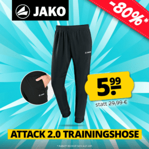 Beim Joggen oder im Gym ist eine gute Trainingshose Gold wert. Die Jako Attack 2.0 Trainingshose gibt’s jetzt für schlappe 10,94€ inkl. Versand bei SportSpar.