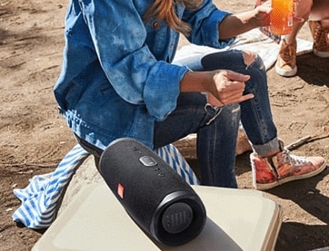 Der JBL Charge 4 Bluetooth-Speaker ist das nicht mehr ganz so neueste Modell der beliebten Lautsprecher-Reihe, bekommt aber in den Testberichten nach wie vor ordentlich Bestnoten, vor allem aufgrund der Akkulaufzeit und des Sounds.