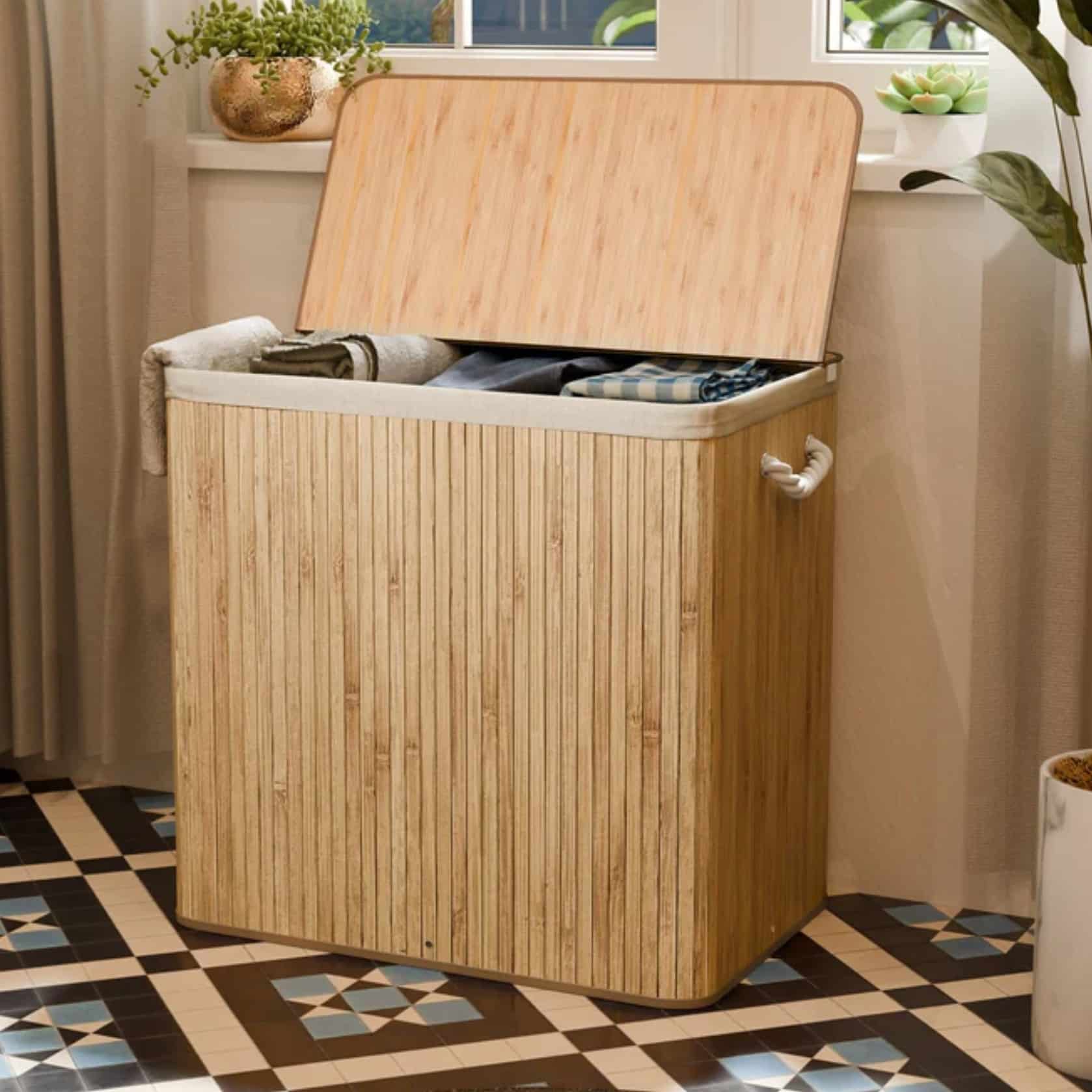 🌿 Curly Bambus Wäschekorb (150 Liter, 3 Fächer, inkl. Wäschesack)