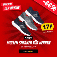 Bei SportSpar bekommt ihr derzeit die Kappa Logo Mullen Herren Sneaker für unter 29€. Dabei könnt ihr euch zwischen drei Farben (Schwarz, Blau oder Grau) entscheiden. Alle Größen zwischen EU 41 und 45 sind derzeit noch vorhanden.