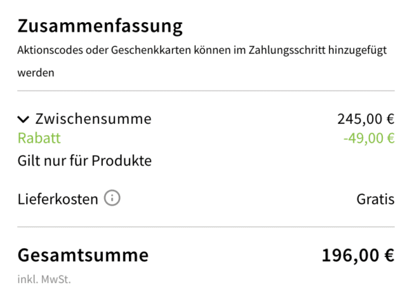 Zwischen dem 11.03., 20:00 Uhr, und dem 13.03.2023, 08:59 Uhr, erhalten Sie im Mediamarkt-Onlineshop unter mediamarkt.de (Käufe bei Drittanbietern ausgenommen) nach Eingabe des Aktionscodes „Outlet_20“ für alle Artikel mit der Kennzeichnung „Outlet%“ einen Abzug von 20% auf den ausgezeichneten Verkaufspreis. Der Abzug erfolgt im Warenkorb. Keine Barauszahlung. Nicht kombinierbar mit anderen Aktionen.