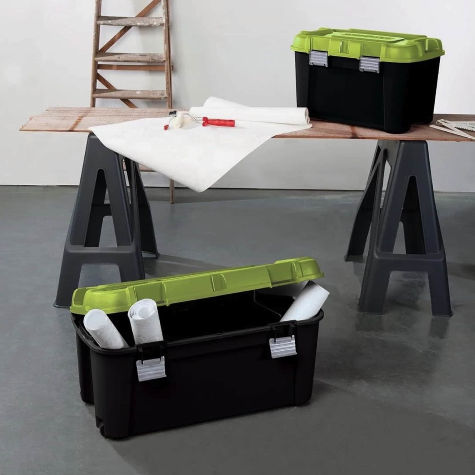 Diese Boxen sind aus einem extrem widerstandsfähigen Harzmaterial gefertigt, das sowohl stoßfest als auch feuchtigkeitsbeständig ist. Durch die stapelbare Bauweise könnt ihr euren Stauraum in Keller, Garage oder im Fahrzeug optimal ausnutzen. Die stabilen Metallclips sorgen dafür, dass der Deckel jederzeit fest sitzt und der Inhalt vor Staub geschützt bleibt.