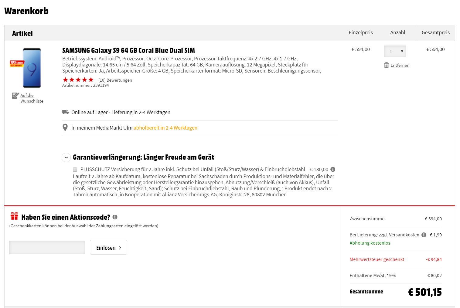 >> https://www.mediamarkt.de/de/product/_samsung-galaxy-s9-64-gb-coral-blue-dual-sim-2391194.html