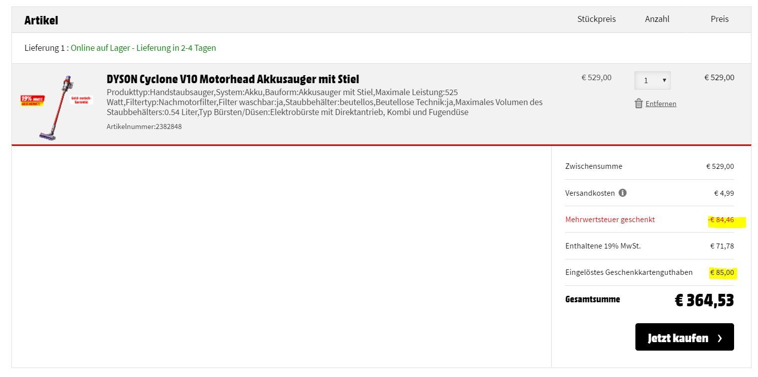 19% MwSt-Rabatt-Aktion bei MediaMarkt (auf Alles)