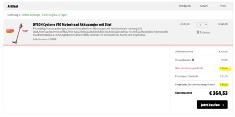 • Dyson V10 Absolute für 525€ (Idealo: 575€)