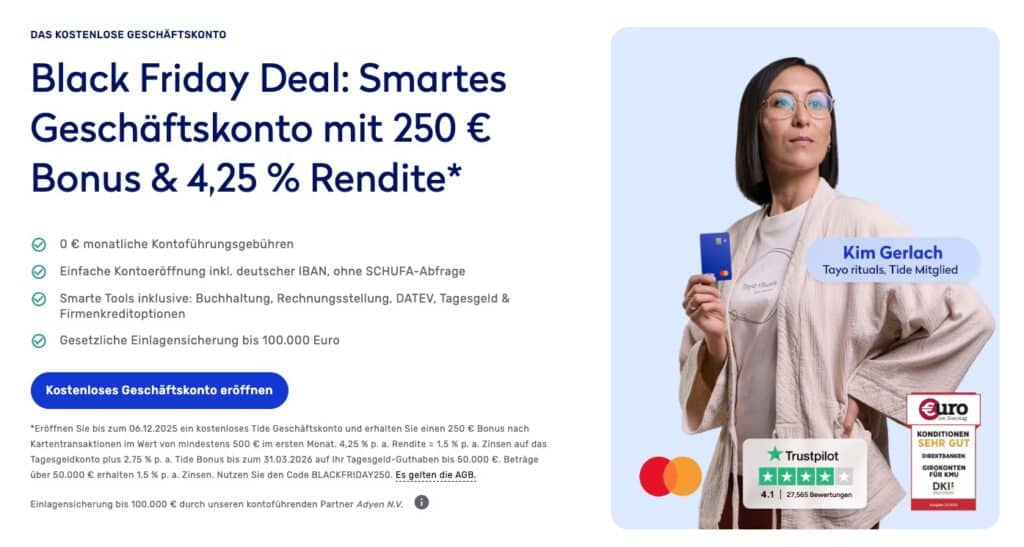 250 € Bonus! 🤑 Kostenloses Tide Geschäftskundenkonto eröffnen