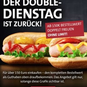 Effenberg 17.03.2021, 21:04Es gibt auf das Kundenkonto den gleichen Betrag, wie man ausgegeben hat… Kauft man zb für 150€ Gutscheine bekommt man 150€ Guthaben aufs Kundenkonto… Also für 150€ = 300€ zum verfleischen
