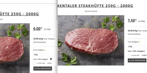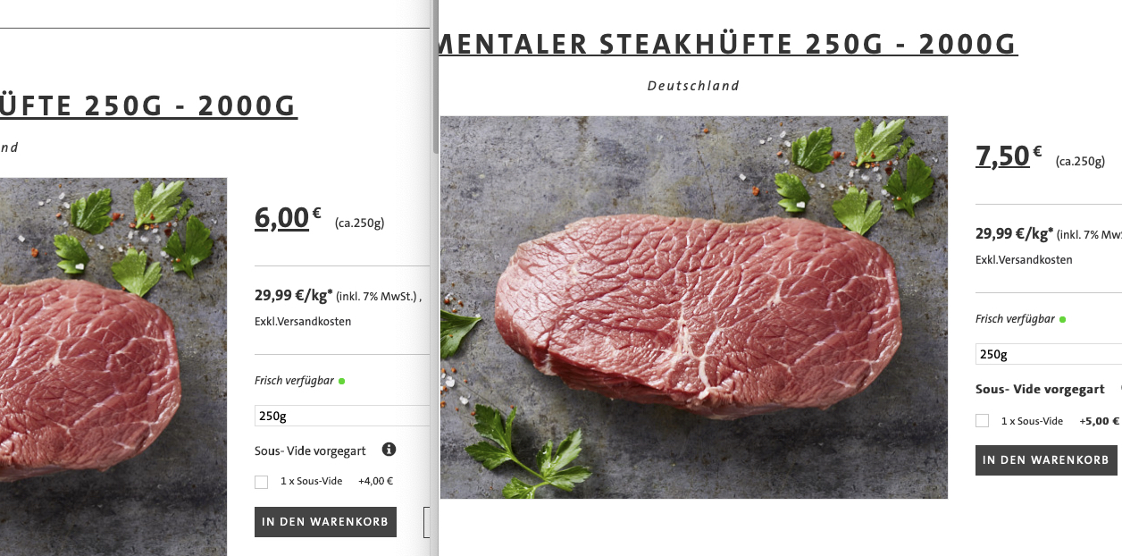 - Simmentaler Steakhüfte (250g) für 6€ statt 7,50€