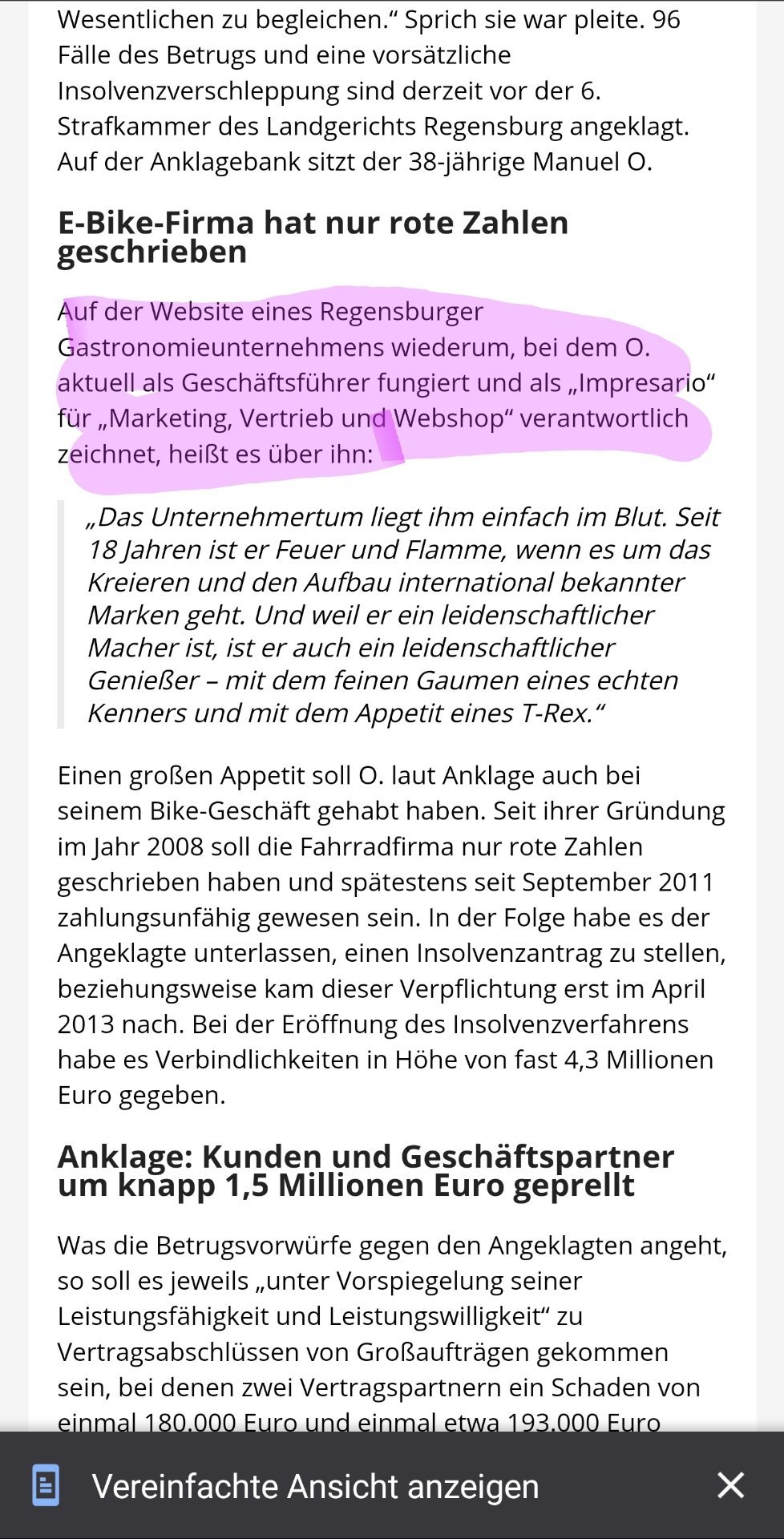 Stefan S. 19.05.2020, 10:36Wir haben eine sehr ausführliche Stellungnahme zu dem Thema per Mail bekommen: Insolvenzverschleppung ja – aber nur, weil leider vieles schlecht gelaufen ist. U.a. hatte der Hersteller zuvor schon Insolvenz angemeldet und ein Investment wurde in letzter Minute gecancelled. Die Betrugsvorwürfe haben sich nie bewahrheitet und wurden fallen gelassen.