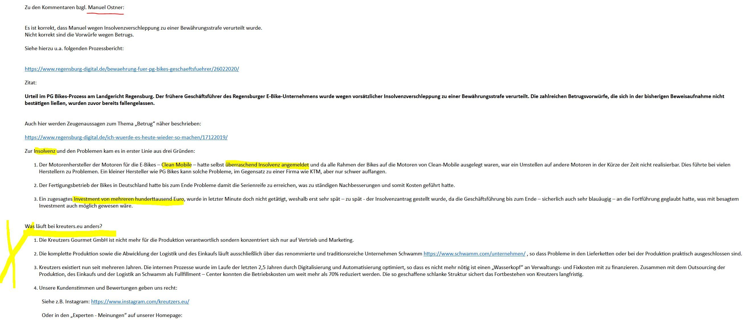Auch ist kreutzers.eu ein komplett neues Unternehmen mit ganz anderen Rahmenbedingungen und hat somit nichts mit den alten Anschuldigungen zu tun. Ich hänge einen Screenshot der Mail an: