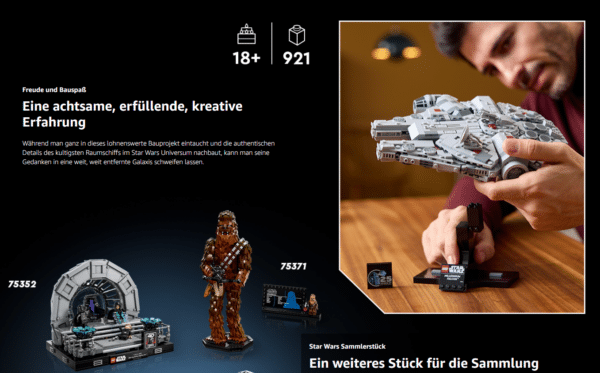 Für den Bau bietet euch die LEGO Builder App eine digitale Bauanleitung, mit der ihr das 3D-Modell betrachten und den Baufortschritt verfolgen könnt. Dies macht den Bau nicht nur einfacher, sondern auch interaktiver. Ob als Geschenk oder für die eigene Sammlung – der Millennium Falcon ist eine Bereicherung für jeden LEGO und Star Wars Liebhaber.