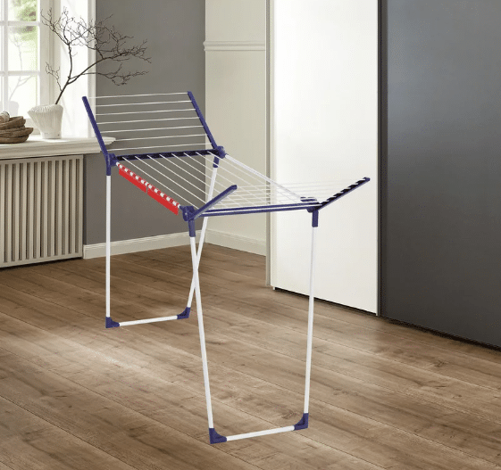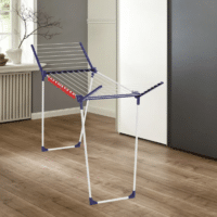 2 ausklappbare Seitenteile sorgen für zusätzliche Flexibilität. Mit diesem LEIFHEIT Wäscheständer aus Aluminium in Blau und Weiß sind Ihre Klamotten schnell wieder einsatzbereit!