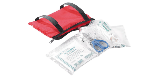 Im Inneren erwarten euch die Essentials für die Erstversorgung ordentlich in einer 6-teiligen Folientasche. Von Wundkompressen über Verbandtuch bis hin zu Pflasterstrips – ihr habt alles griffbereit.