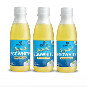 Das Liquid EGGWHITE – 100% natural Sparpaket beinhaltet drei Flaschen zu je 970 Millilitern flüssigen Eiweiß, das sich durch eine hohe Bioverfügbarkeit hervorhebt.