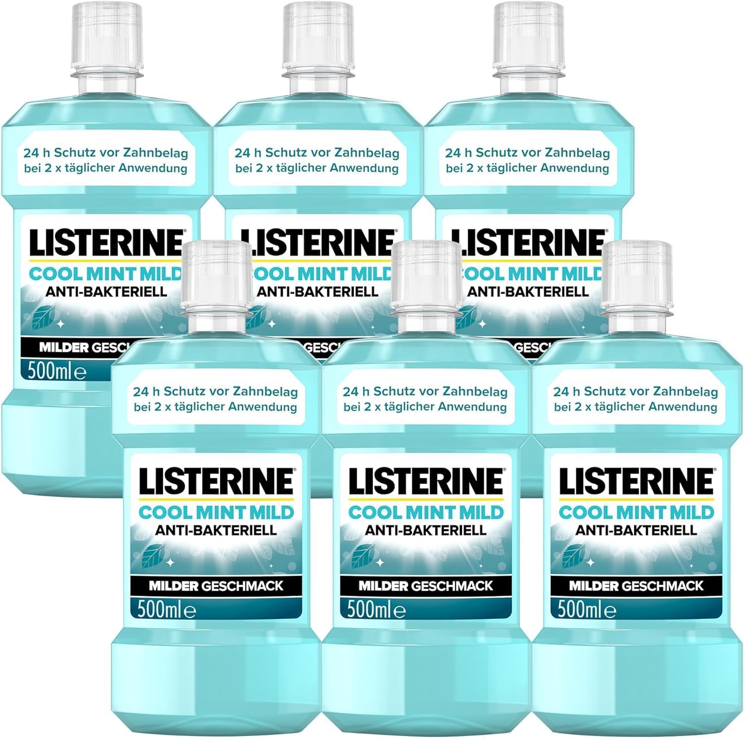 Listerine Cool Mint Mild (6x 500 ml) 🦷 antibakterielle Mundspülung mit ätherischen Ölen & ohne Alkohol
