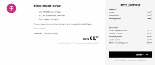 Magenta TV Smart inkl. RTL Plus Premium für effektiv 5 Euro im Monat bei 24 Monaten Mindestlaufzeit.