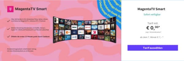 Jetzt bekommt jeder bei Telekom – egal ob Neu- oder Bestandskunden – das MagentaTV Smart Paket über 24 Monate zu guten Konditionen. Damit habt ihr Zugriff auf über 160 Sender in HD, sowie auf etliche Serien und Filme in der Mediathek und zusätzlich ist im Abo auch RTL Plus Premium enthalten. Als Prämie gibt es dann 45€ Cashback!