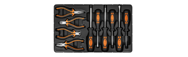 Ergänzt wird der Akkuschrauber durch ein Sortiment an Zangen, Schraubendrehern und Steckschlüssel-Einsätzen, sodass ihr für die meisten Schraub- und Montagearbeiten gewappnet seid.