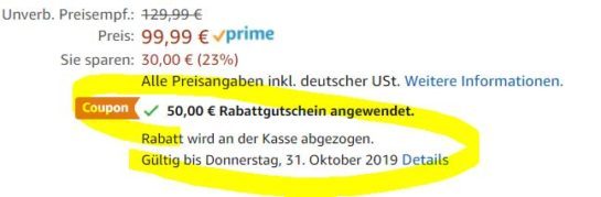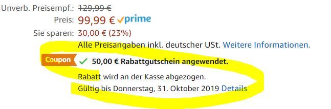Stefan S. 08.10.2019, 13:04Man muss den 50€ Coupon aktivieren: