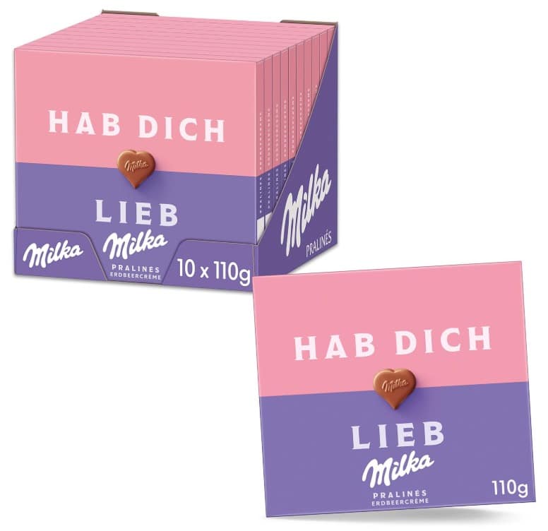 10x Milka „Hab Dich Lieb“ Pralinen-Packung 💞🍫 (Erdbeercreme, 10 x 110g)