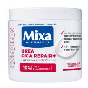 Trockene und spröde Haut kann sehr unangenehm sein, besonders wenn auch noch raue Stellen und Spannungsgefühle hinzukommen. Genau für solche Fälle wurde die Mixa Urea Cica Repair+ entwickelt. Sie ist ideal für sehr trockene und raue Haut und versorgt sie mit intensiver Feuchtigkeit und Pflege.
