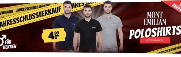 Ein ordentliches Schnäppchen für günstige Polo Shirts hat grade SportSpar: Die MONT EMILIAN „Caen“ Herren Basic Polo-Shirts für je 4,99€ exkl. Versand. Im Preisvergleich geht’s erst ab 12€, und bisher sind auch noch alle Größen vorhanden von S bis 3XL.