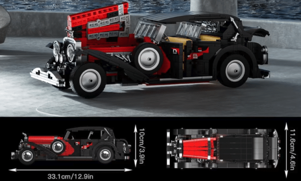 Mit 1308 kleinen Bausteinen bietet es euch ein detailliertes Abbild eines Oldtimers im Maßstab – eine Hommage an die automobile Vergangenheit. Das fertige Modell nimmt mit seinen Abmessungen von 33,1 x 11,6 x 10 cm eher weniger Platz ein.