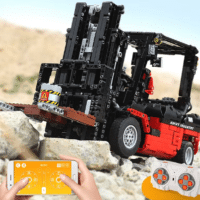 Dank der intuitiven haptischen Fernbedienung habt ihr die präzise Kontrolle über den Gabelstapler, was es ermöglicht, auch komplexe Manöver spielerisch zu meistern. Das macht den Gabelstapler für Kinder ab 6 Jahren sowie für ältere Bausteinfans zu einem spannenden Spielzeug.
