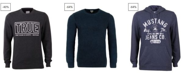 Jeans-direct haut Marken-technisch wieder Einen raus: Aktuell könnt ihr euch Mustang Herren Pullis und Hoodies für je 17,95€ 15,44€ sichern: 10 unterschiedliche an der Zahl. Ob mit oder ohne Kapuze, die Teile sind alle gleich günstig und on top sogar versandkostenfrei bestellbar! Einfach mal anschauen wenn ihr noch Pullis sucht: