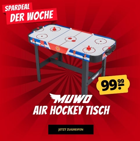 Coole Alternative zum Kickertisch, oder? Bei Sportspar bekommt ihr nun versandkostenfrei den MUWO „Game On“ Air Hockey Tisch (ca. 122 x 61 x 79 cm) für nur 99,99€. Einen ähnlichen (gleiche Maße) gibt es sonst ab knapp 150€ inkl. Versand. Man kann also durchaus sagen: Hier kann ordentlich gespart werden!![]()