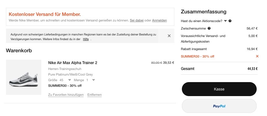 Im Onlineshop von NIKE gibt es ja gerade mal wieder 30% Extra-Rabatt auf bereits reduzierte Artikel. Da wollen wir euch mal noch einen weiteren Schuhextra vorstellen, den ihr im Sale ergattern könnt: Den Nike Air Max Alpha Trainer 2 Herren Sneaker in grau! Die ersten Größen sind auch hier schon wieder weg, also schnell mal reinschauen: