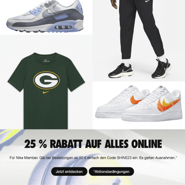 NIKE 🎉 25% Extra-Gutschein auf über 6.000 Artikel 👟👕 z.B. Sweater, Sneaker, Shirts & mehr (ab dem Kauf von 2 Artikeln)