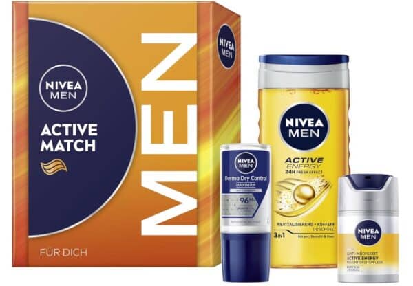 Ihr sucht noch das passende Pflegeset, um eure tägliche Routine zu optimieren oder um jemandem eine kleine Freude zu machen? Mit dem NIVEA MEN Active Match Geschenkset bekommt ihr ein rundes Sorglospaket für die tägliche Gesichts- und Körperpflege. Aktuell gibt’s das Set bei Amazon für 7€ inkl. Versand statt 12,04€ – ein Deal, der sich sehen lassen kann.