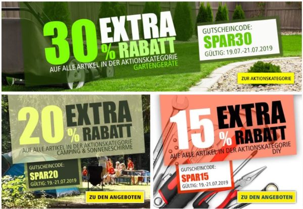 Leider müssen für die meisten Artikel noch extra Versandkosten bezahlt werden – bei den Beispielen schon mit einberechnet! Und die Preise an sich sind allerdings sehr gut, sodass diese nicht so sehr ins Gewicht fallen sollten. Schaut einfach ob etwas für euch dabei ist und viel Spaß mit euren neuen Rasenmähern, Grills, Zelten, Sport-Geräten usw. 🙂
