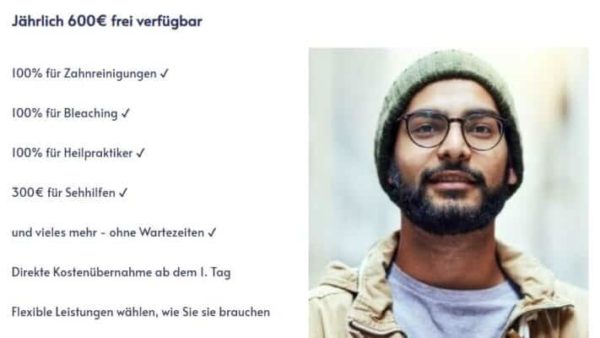 Zum Beispiel 200€ für Osteopathie, 300€ für eine Brille und 100€ für eine Zahnreinigung – damit schöpft ihr das volle Budget von 600€ aus.