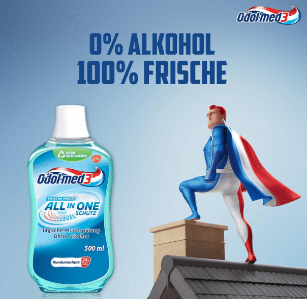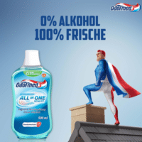 Wenn kein Produkt im Badezimmer fehlen darf, dann ist das auf jeden Fall die Mundspülung. Mit der Odol-med3 Mundspülung All in One verschwindet jeder Mundgeruch in ein paar Sekunden und es geht deutlich schneller als Zähneputzen.