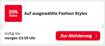 Otto hat nun wieder eine spannende Rabatt-Aktion! Ihr bekommt mind. 20% Rabatt auf eine riesen Auswahl an Fashion. Mittlerweile müsst ihr ja keinen Gutscheincode mehr eingeben, sondern aktiviert einfach den Coupon am Artikel oder der Übersichtsseite: