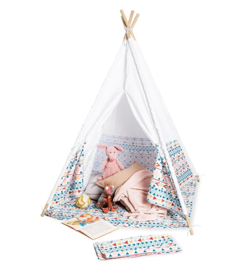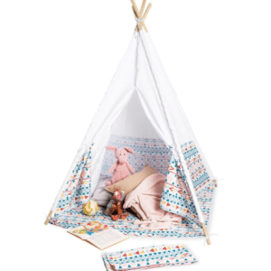 Das Kinderzelt ‚Tipi Naira‘ bietet mit seinen Maßen von etwa 120 cm Breite und Tiefe sowie einer Höhe von 155 cm viel Platz für Kinder ab 3 Jahren. Das bunte Design macht es zu einem echten Hingucker im Kinderzimmer. Besonders praktisch ist das integrierte Fenster, das es den Kleinen ermöglicht, die Welt um sich herum im Blick zu behalten. Für den Komfort sorgt eine gepolsterte Bodenmatte aus 100 % Polyester-Schaum, die zum Verweilen einlädt – ob beim Spielen, Lesen oder Entspannen. Einfacher Auf- und Abbau sowie der mitgelieferte Aufbewahrungsbeutel erleichtern es, das Zelt an verschiedene Orte mitzunehmen. Ideal als Geschenk, bringt das ‚Tipi Naira‘ Freude für Kinder und ermöglicht unvergessliche Momente in ihrer eigenen kleinen Welt.