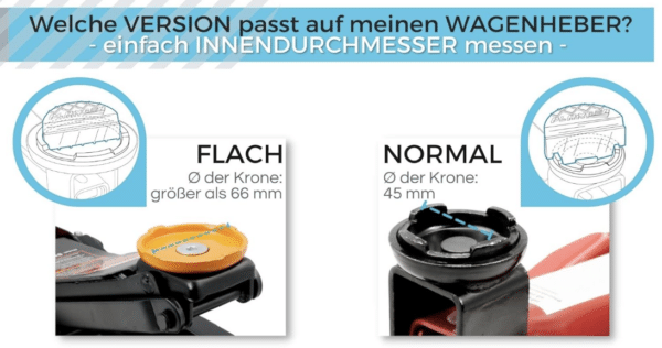 Einfach die Größe eures Wagenhebertellers und der Aufnahme messen und mit den Angaben abgleichen.