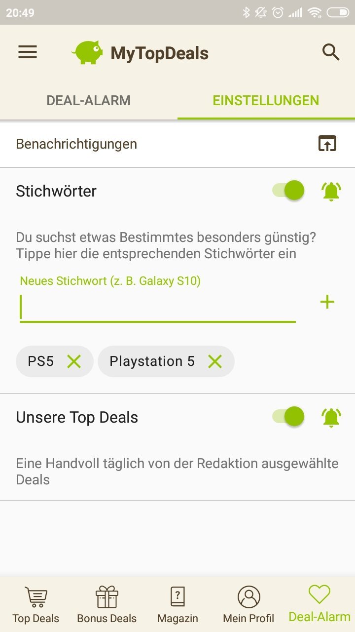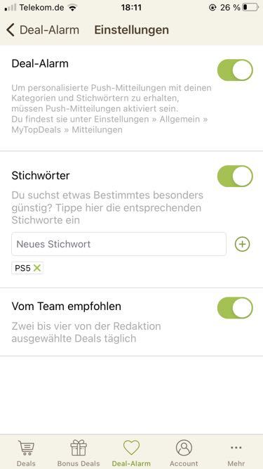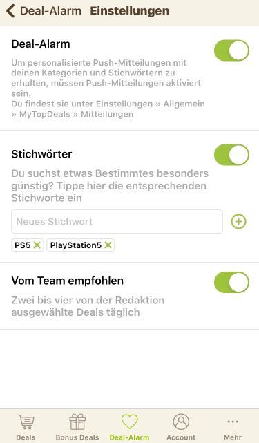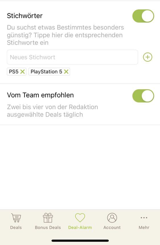 - Deal-Alarm einstellen fürs Stichwort: PS5 / PlayStation 5
