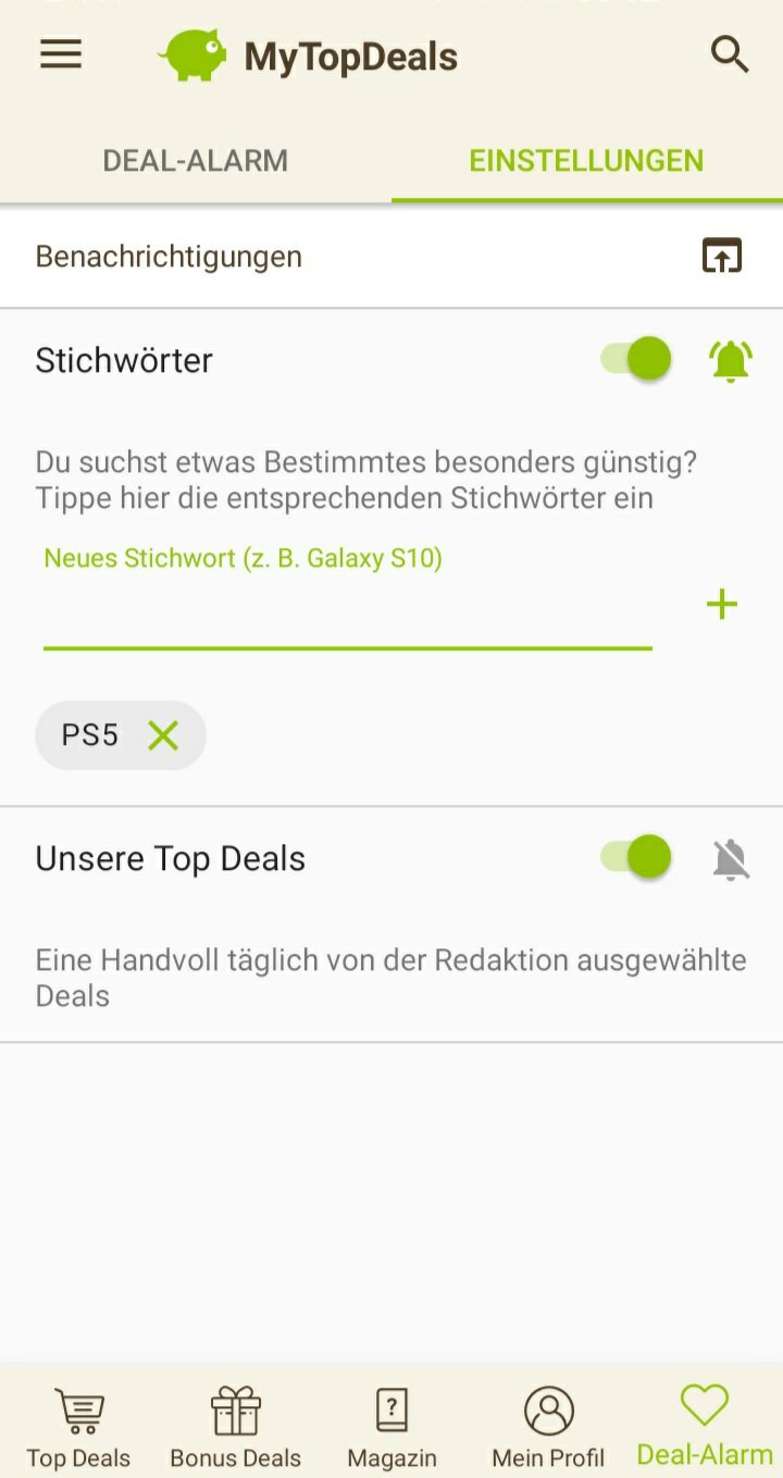 - 🎟 Los: Deal-Alarm in der MyTopDeals App einstellen: