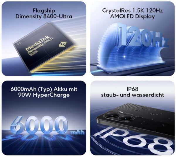 - 6000mAh Akku, 90W HyperCharge