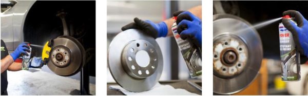 „Mit noch mehr Druck für noch effektivere Reinigungswirkung zum Entfernen von Öl, Fett, Schmutz und Bremsflüssigkeit an Bremstrommeln, -scheiben, -klötzen, -leitungen, -zylindern und Kupplungsteilen. Es verhindert Bremsenquietschen, reinigt Motoren, Maschinen und andere Teile gründlich, ohne Reste zu hinterlassen. Entfernt auch Säuren.“