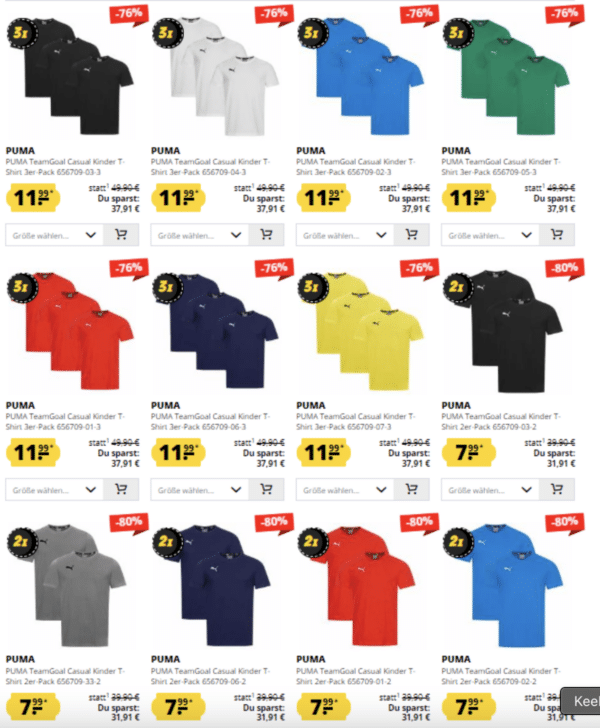 👕 Puma TeamGOAL Casual Kinder Shirts: 2er Pack für 7,99€ | 3er Pack für 11,99€