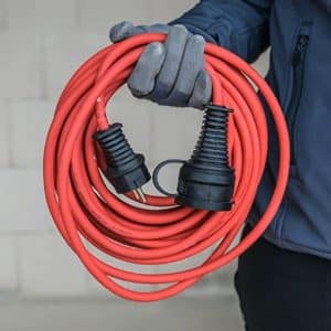 „Den Verlängerungskabel benutze ich im Garten. Der Reicht überall sehr gut aus und ist stabil. Aufgrund der Farbe ist es auch gut zu sehen vor allem beim Rasen mähen. Was mich stört ist nur dass es nichts zum zusammenwickeln hat.“