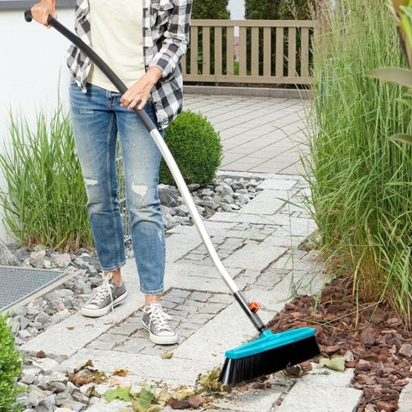 Ein besonderes Highlight ist die integrierte Kratzkante oberhalb des Besens. Sie hilft dir dabei, hartnäckigen Schmutz einfach zu lösen – perfekt für den vielseitigen Einsatz rund ums Haus. Ein weiterer Vorteil des Gardena combisystem-Straßenbesens ist seine Flexibilität: Er kann mit jedem Gardena combisystem-Stiel kombiniert werden. So findest du genau die Stiellänge, die zu deinen Bedürfnissen passt.