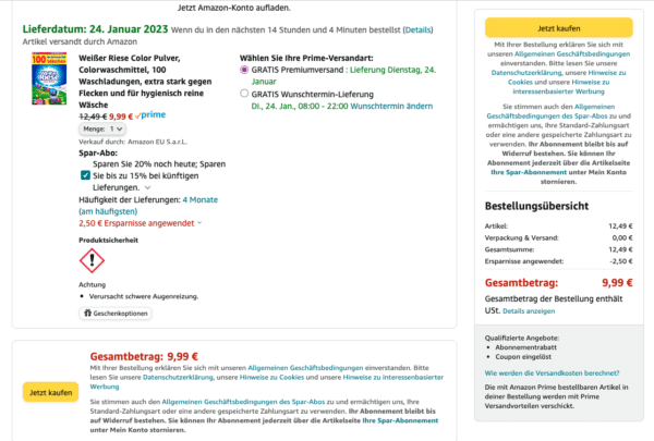 Tipp Das Sparabo könnt ihr nach dem Erhalt der Ware wieder mit nur wenigen Klicks kündigen, wenn ihr keine weiteren Lieferungen erhalten möchtet.