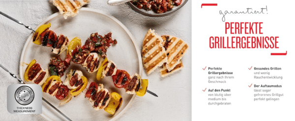 Die innovative Technologie, die automatisch die Dicke der Zutaten misst, sorgt dafür, dass Temperatur und Grillzyklus ohne manuelle Einstellung passend justiert werden.