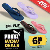 Sommer, Sonne, Strandgefühl – und was darf da nicht fehlen? Richtig, bequeme Flip Flops. Mit den PUMA Epic Flip V2 Unisex Zehentrenner für 11,61€ 9,94€ inkl. Versand statt 14,44€ bei SportSpar könnt ihr euch auf lockere Tage freuen.