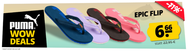 - PUMA Epic Flip V2 Unisex Zehentrenner für 9,94€ (PVG: 14,44€)